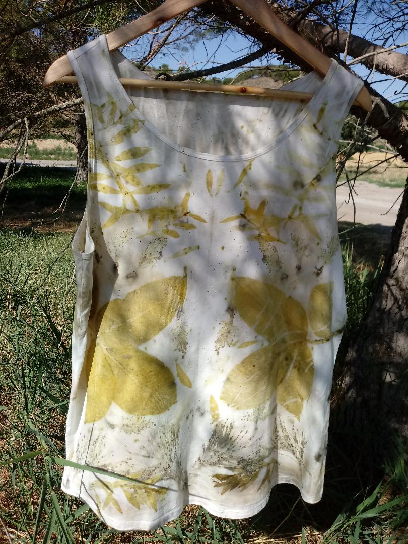 Camiseta algodón 100% con estampación botánica. Sin manga.